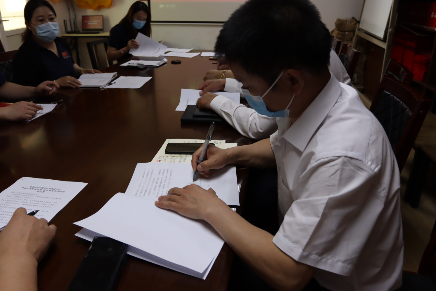会议最后,各项目部和部门负责人在《落实防疫主体责任承诺书》上签字,落实责任。京恒保安公司不忘初心,牢记行业责任,勇当先锋,忠诚使命,努力为打赢疫情防控人民战争贡献京恒力量!