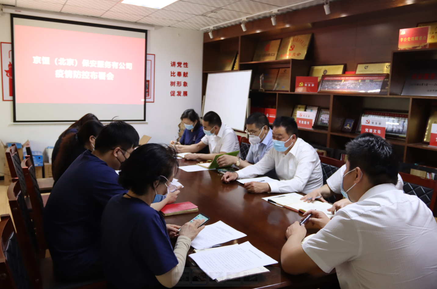 会上,首先由综合办公室再次通报了市局治安管理总队会议要求和近期疫情防控工作具体情况,并宣贯了《京恒保安防疫工作方案》。对疫情期间,人员车辆出入管理措施、工作区突发疫情应急处置、工作区工作秩序的应急保障、应急装备配备、保安队伍疫情期间的管控进行了详细说明。